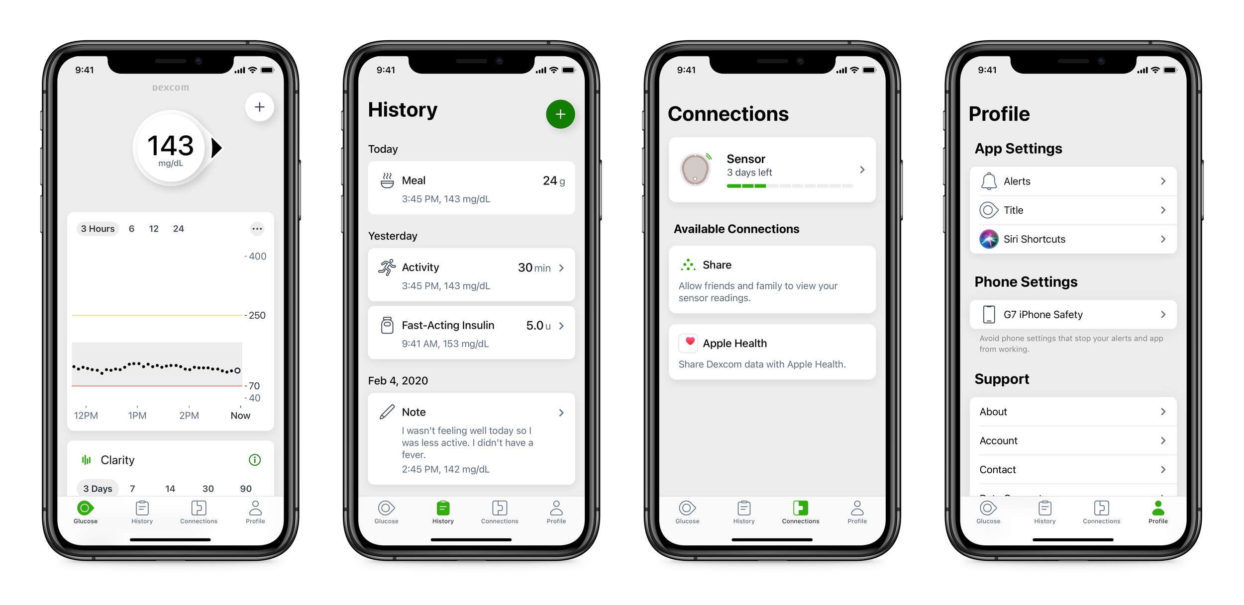 Connections: Support for all add-on features to the core CGM experience. This where users will discover and manage all the supplemental Dexcom products, hardware partners, and 3rd party software integrations.