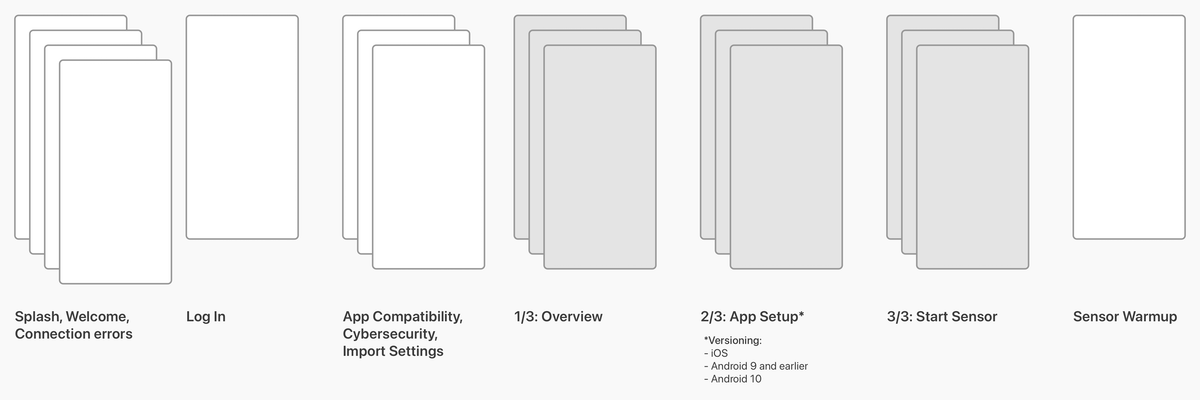 Work began with a presentation to senior leadership on Dexcom’s portfolio review board. I outlined the project goals, design team process, timelines, and needed resources. I highlighted the business value of an improved user experience and a scalable design system. The board welcomed a design vision that would support all the initiatives on the development roadmap (a “future-proof” design, as one SVP called it).