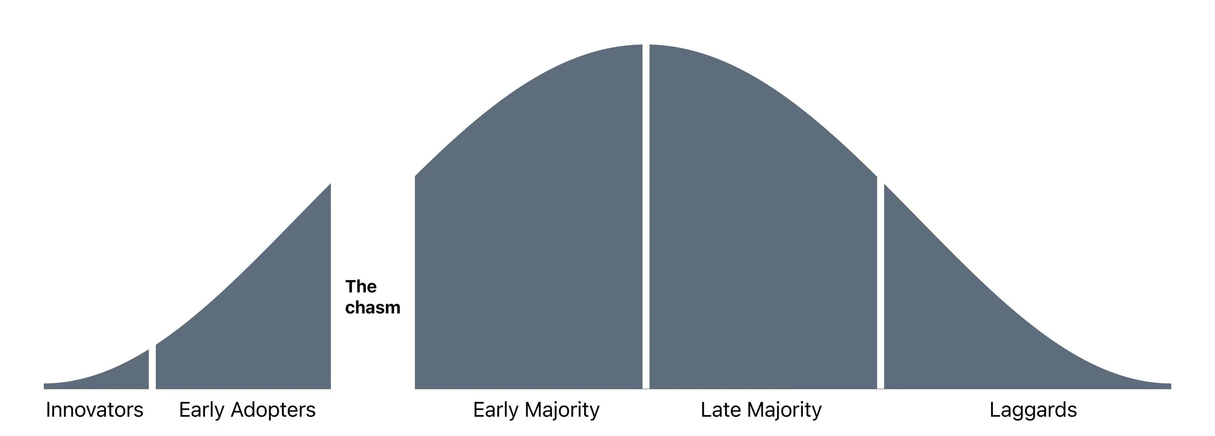 The technology adoption curve from Geoffery A. Moore’s Crossing the Chasm.