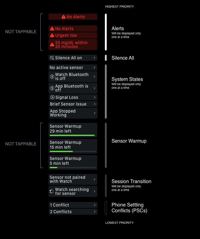 These were largely driven by safety concerns about our alert functionality. Our risk mitigations including our alerts sounding for certain critical alerts such as an Urgent Low glucose (55mg/dL or below) and an unexpected sensor failure. Apple had created a category of notifications years earlier called Critical Alerts. These notifications always sound, even when the user has Do Not Disturb on. Yet for their Watch implementation, these didn’t sound when the Watch was off wrist or locked. It became a critical task that, for example, when the user is charging their Watch and their phone is not nearby that the alert still sounds. Through collaboration with Apple, we were able to get their Critical Alerts notification functionality updated in watchOS 18. As a result DTW requires using this version of the operating system (which also requires users to have a Watch that is new enough that it supports this version of watchOS).